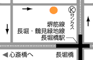 地下鉄長堀橋駅徒歩2分 長堀橋交差点を北へ、一筋目を西へすぐ、南側