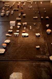奥の部屋には小さな作品が街を形づくるように配置される