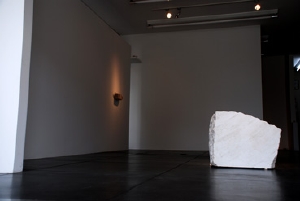 存在をダイレクトに感じる大きな作品と、大理石に潜む魅力的な色、かたちをドローイングするように削り出した手のひらに載る作品を展示します。