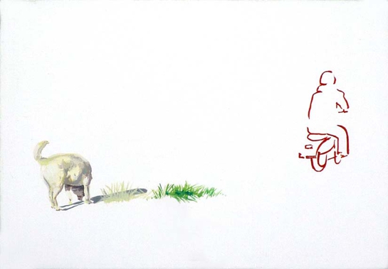 線描と写実表現を余白でつないだ隙間の多い描写です。