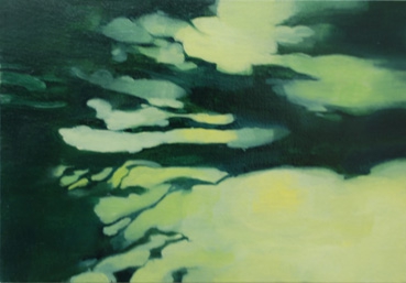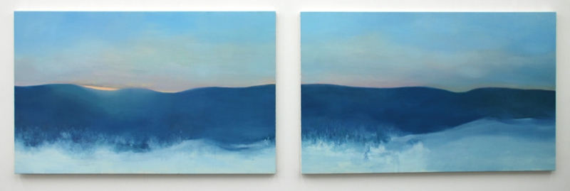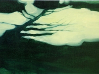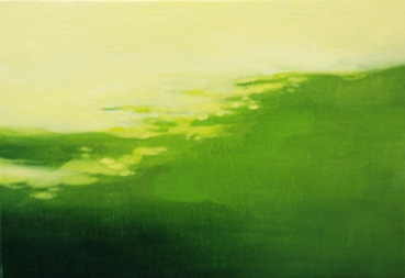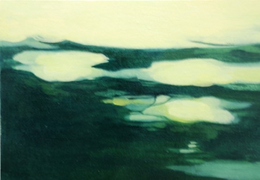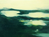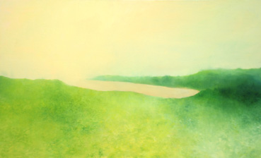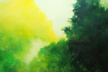 昨年の個展では長尾さんならではの雪景色をグレイトーンで表現した作品でしたが、今個展では一転明るい季節の風景を描きます。決して多くの色を使うわけではない画面ですが、豊かな感情を抱かせる作品です。