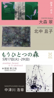 大森翠・北中且子・中津川浩章・関根勢之助 「もうひとつの森 」5.17- 29Another forest. It is abstractOmori Midori,Kitaura Katsuko,Nakatugawa Hiroaki & Sekine Seinosuke