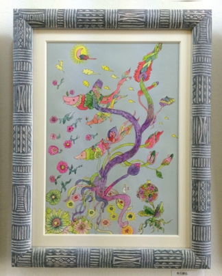 小さな生きもの達(実物大)と共に、きげん良く歩く花をどうぞご覧ください。