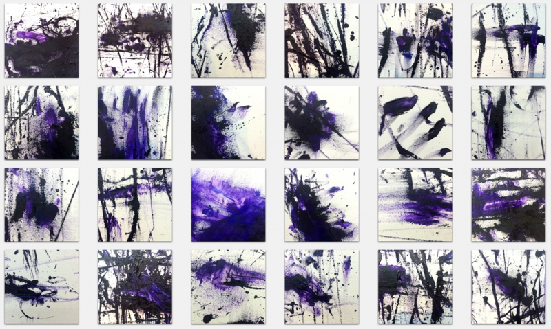 ブルーバイオレットの線描を主体とした大画面のドローイング・ペインティングと呼ばれるアクリル画を制作発表。代表作「クラトファニー(力の顕現)」「新世紀」「考古学」など。