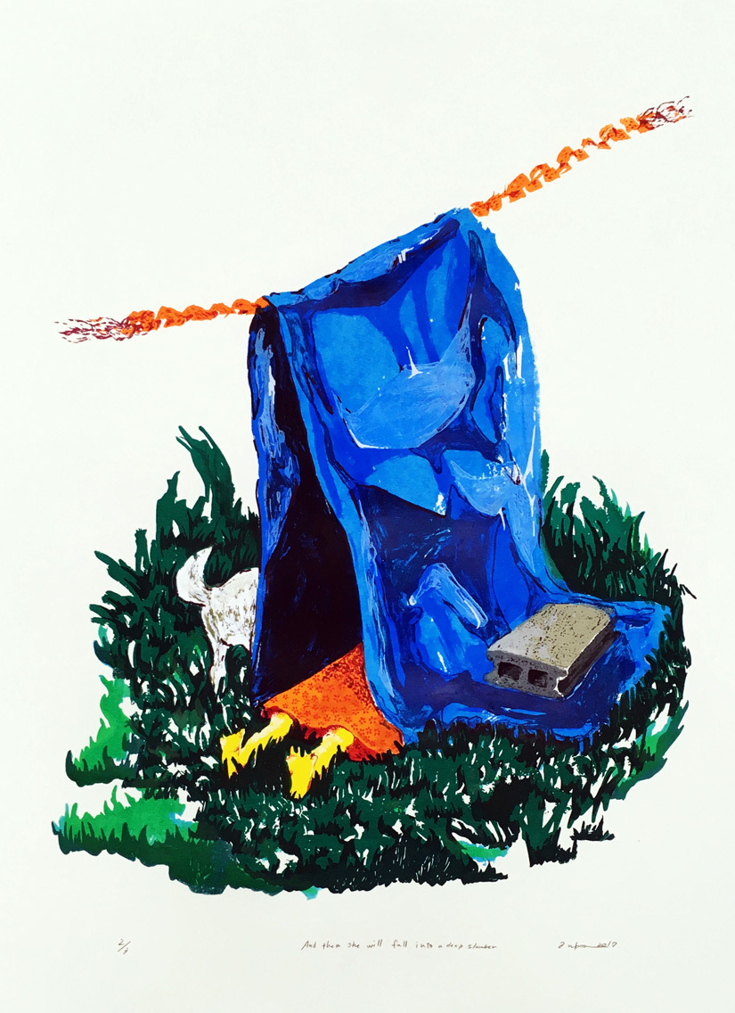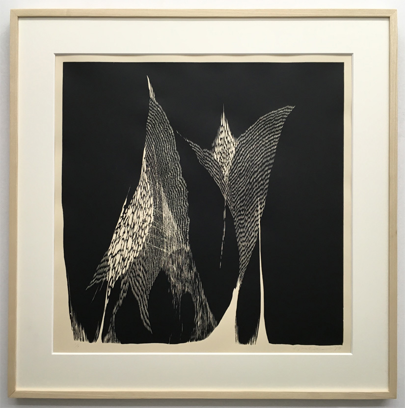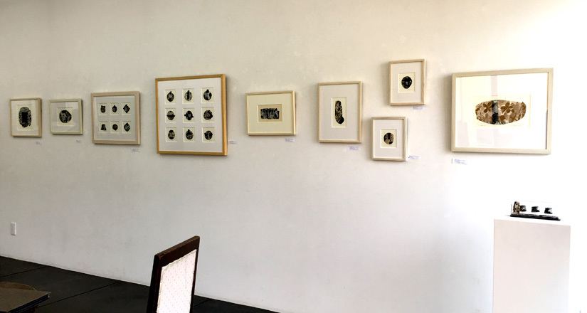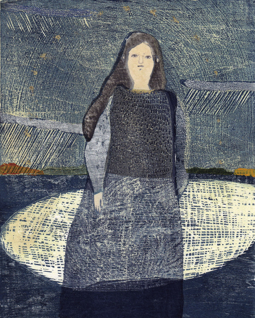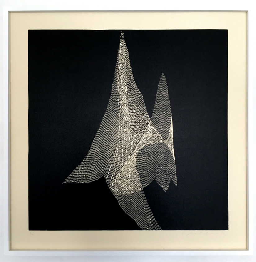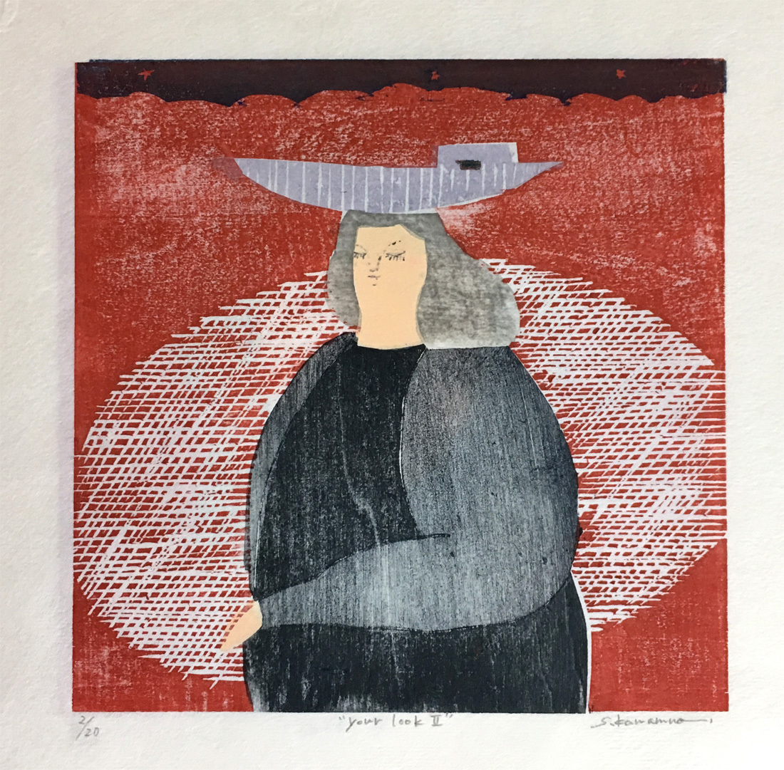 私にとって版木と対峙している時間は、真夜中のようなものです。じっと見つめていると、記憶や、感情や、自分の輪郭までもがぼやけて溶け出してゆくような感覚が、そこにはあります。 その中を彷徨うように、戯れるように手を動かすことで生まれてくるリズムや流れ、その重なりによる曖昧なイメージの痕跡を紙にインクで刷りとります。 刷り上がったとき、私は今まで見ていた世界の向こう側に立っているような、そんな気さえするのです。